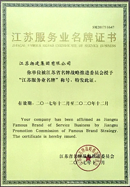 集團榮獲2017年度“江蘇服務業名牌”稱號