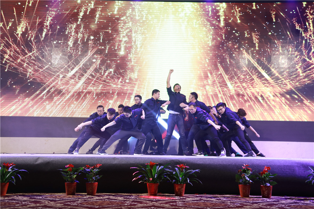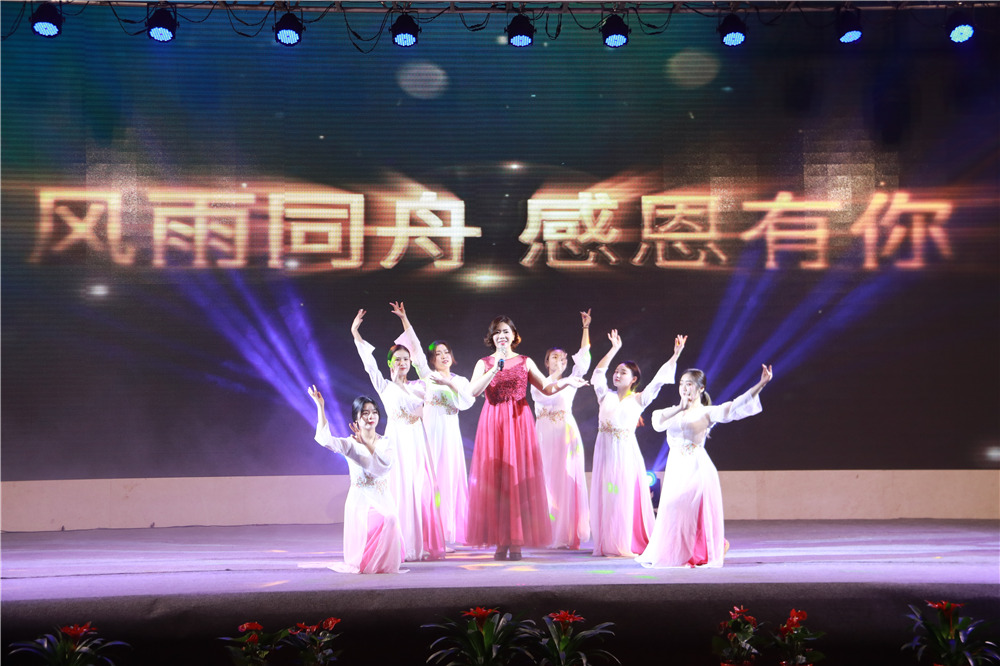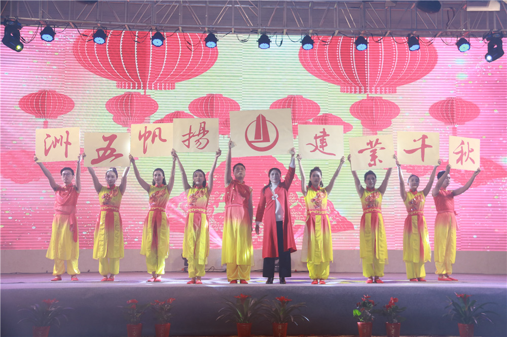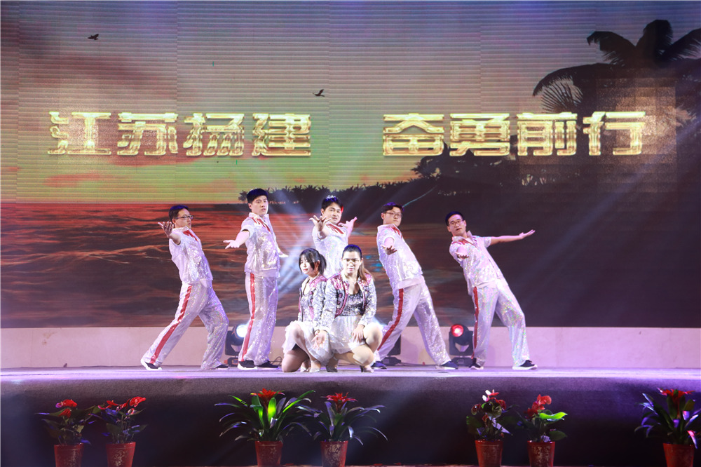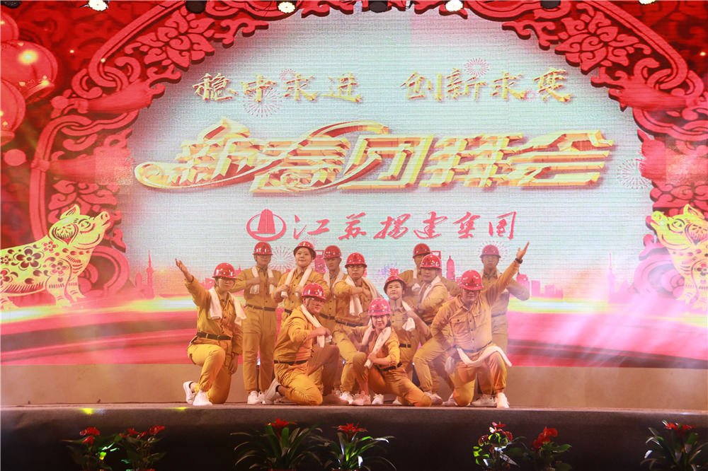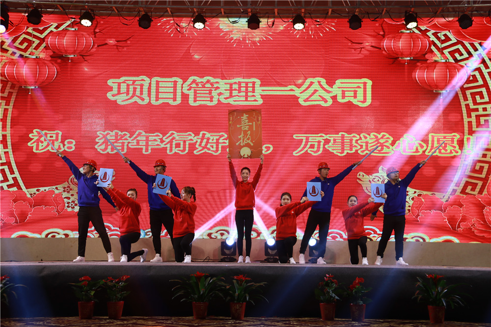 隨后,華中華鼎公司聯(lián)袂表演歌伴舞《我愛你中國&相親相愛一家人》,四公司員工表演的音樂快板《揚建花開大上海》,講述了四公司2108年發(fā)展喜事多,業(yè)績上臺階,全速開發(fā)江浙滬的發(fā)展業(yè)績;樁基公司以評話+講述+歌舞的形式表演了《我們是快樂的一家人》;一公司的搖滾說唱《一公司,爭第一》節(jié)目,表達(dá)了舍我其誰、永爭第一的豪情;三公司年輕員工表演了音詩畫劇《建筑“舞”者》;二公司的90后員工表演了,配樂朗誦《厲害了,揚建90后》,表達(dá)了立志與前輩們一起譜寫揚建發(fā)展新篇章的雄心;海南島的阿哥阿妹表演了舞蹈《筑夢城市》;機電公司的說唱歌舞《追夢揚建》,描繪了2019將是承載新夢想、發(fā)力新業(yè)態(tài)的嶄新一年;華發(fā)公司的音樂短劇《新時代的弄潮者》,展示了揚建人揚建人薪火相傳66載,緊跟時代,勇立潮頭的精神面貌;華盛周材公司最后表演了寓意深刻的歌舞+武術(shù)《風(fēng)雨同舟,感恩有你》。