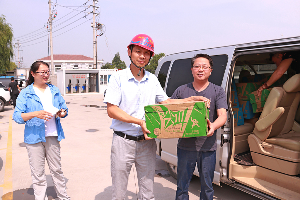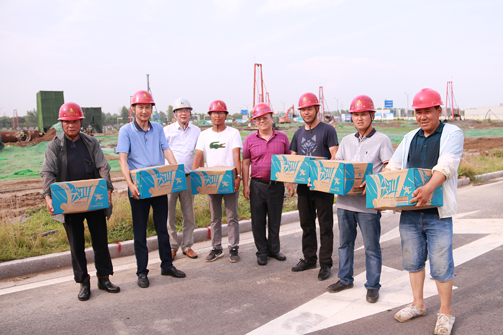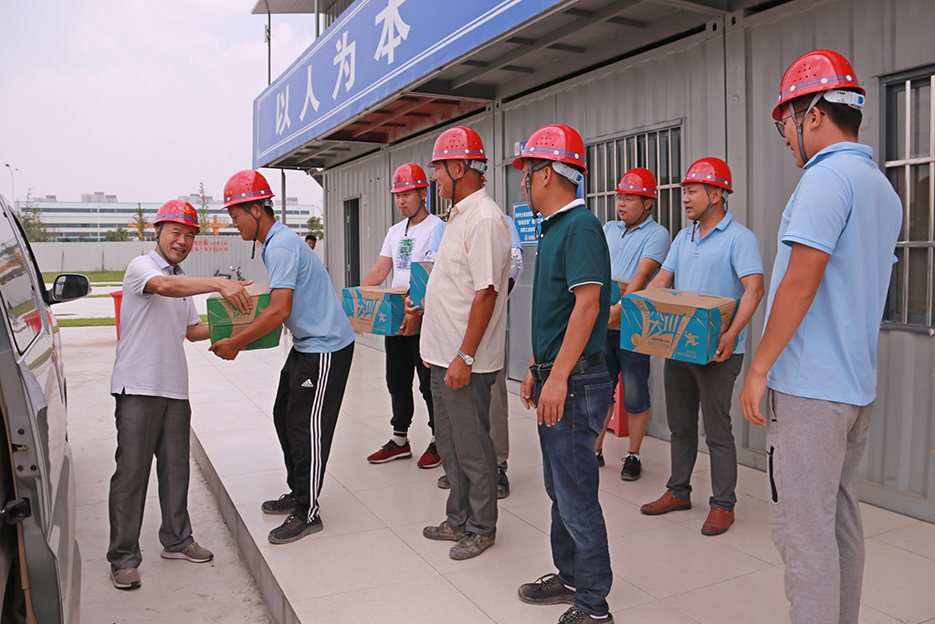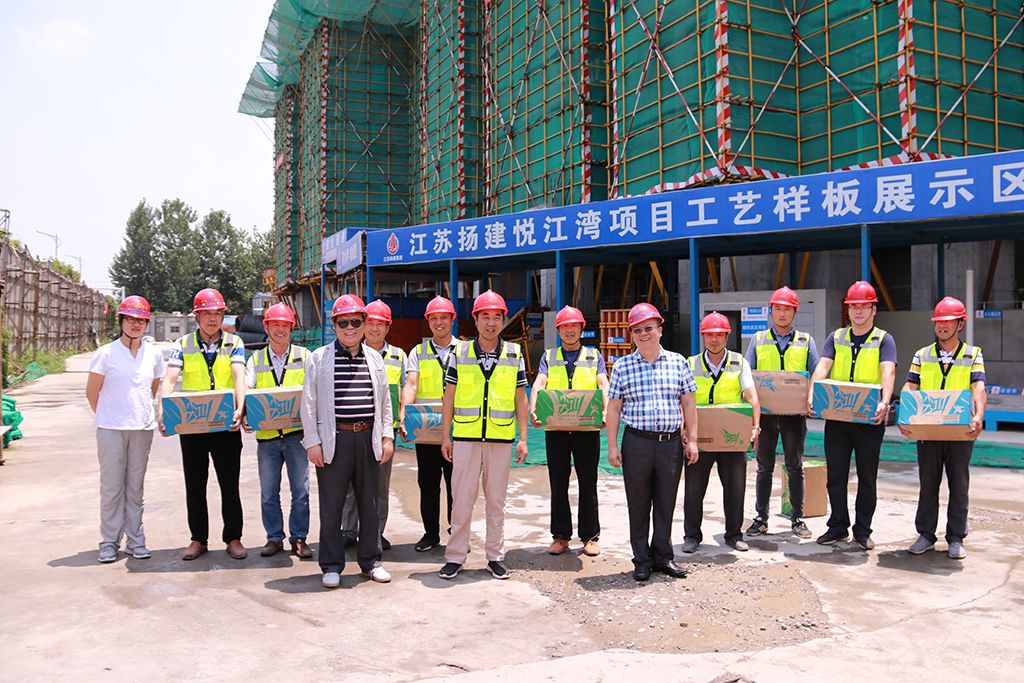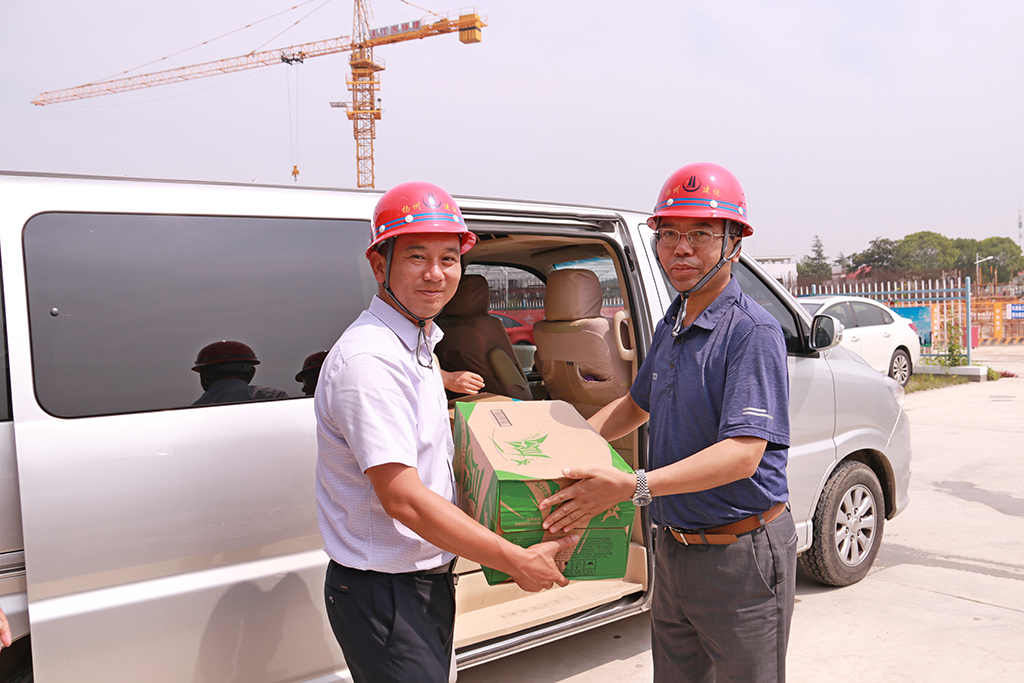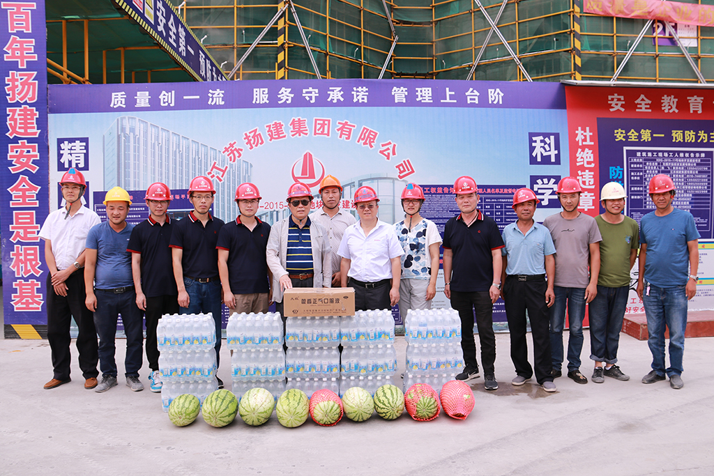 揚建網訊 近來,連續的高溫天氣驕陽似火地烤驗著揚州,也烤驗著我們堅守崗位的每一位員工。為切實做好項目一線防暑降溫工作,7月22日至26日,集團領導及集團工會、團委、人力資源部、安全部、總師辦等相關部門負責人先后赴揚子新苑D區安置房一期北組團項目工程、警示教育基地、湯汪污水處理廠三期擴工程、現代農業科技創新中心產業化基地、廣沃電氣控制成套設備項目工程、公共衛生中心、高郵人民醫院東區醫院(二期)、儀征2017-39#地塊、化學之光、沈飛601研究所項目、揚州軟件園南區工程、華晟新型建筑科技、無錫食品城工程項目部等近20個項目部進行夏季慰問,為冒著酷暑奮戰在一線的項目部管理人員、施工人員送去了飲料等消暑物品。