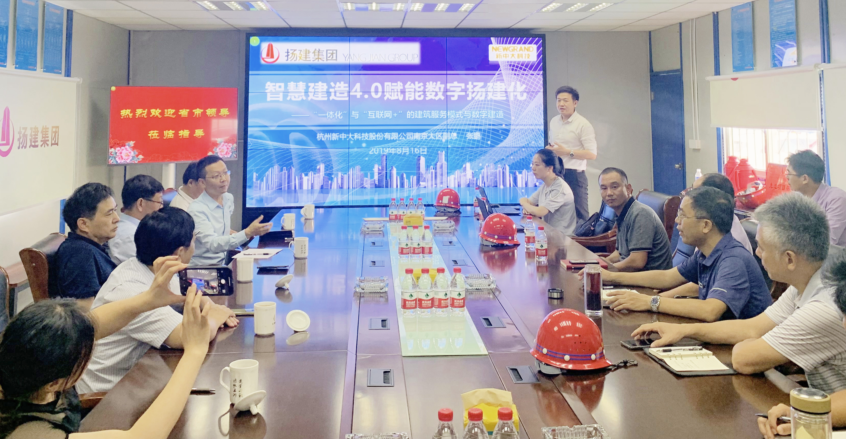 杭州新中大南京大區(qū)副總經(jīng)理張鵬就目前揚建集團智慧建造4.0之路,從數(shù)字化、集成化、智能化等方向進行了展示,并對集團下一步智慧建造的構(gòu)想作出了講解。