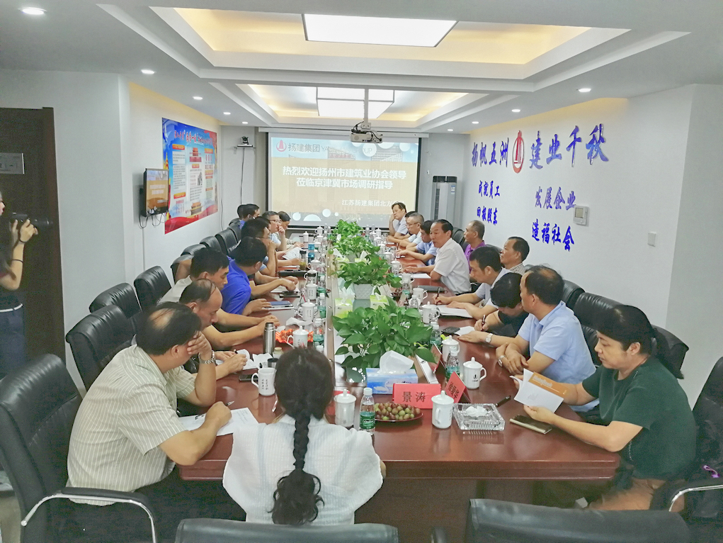 揚建網訊 8月19~21日,揚州市建筑業協會一行來津開展京津冀和雄安新區市場調研。市建筑業協會會長任壽松率華建、揚建、邗建等揚州市11家特級資質企業董事長或總經理、各縣(市、區)協會會長共25人參加調研,我集團董事長曹德榮參加調研活動。