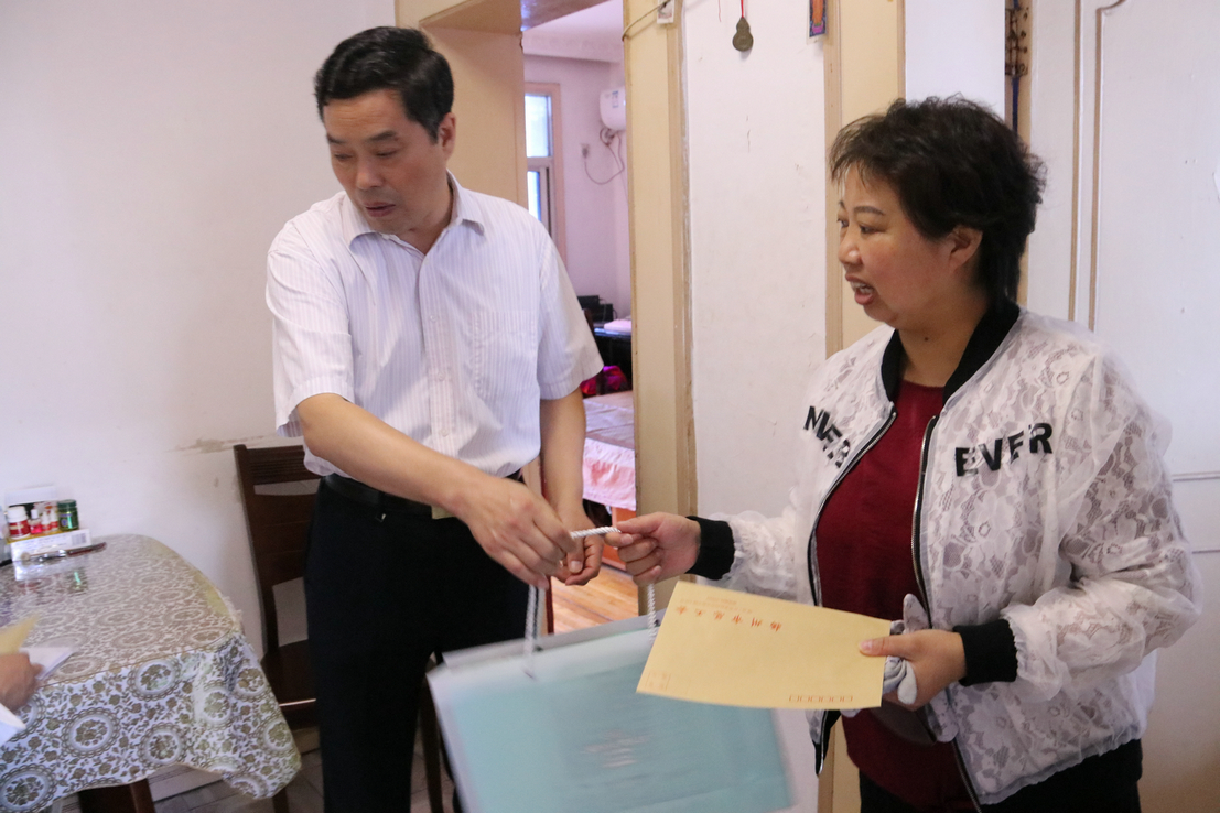 揚(yáng)建網(wǎng)訊 時(shí)值中秋佳節(jié),市總工會(huì)陳錫朝副主席、韓士軍副主席、樊秉強(qiáng)副調(diào)研員分別帶領(lǐng)建設(shè)產(chǎn)業(yè)主任范華、經(jīng)審委主任葉東富等一行,走訪慰問我集團(tuán)特困職工家庭,為他們送去了慰問金、中秋月餅和節(jié)日的祝福,讓困難職工們?cè)谥星锛压?jié)到來之際,深切感受到工會(huì)組織大家庭的溫暖和關(guān)愛。我集團(tuán)工會(huì)及基層單位相關(guān)人員陪同。