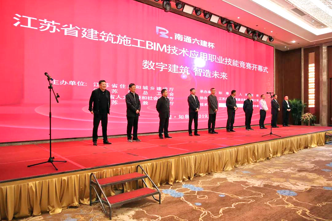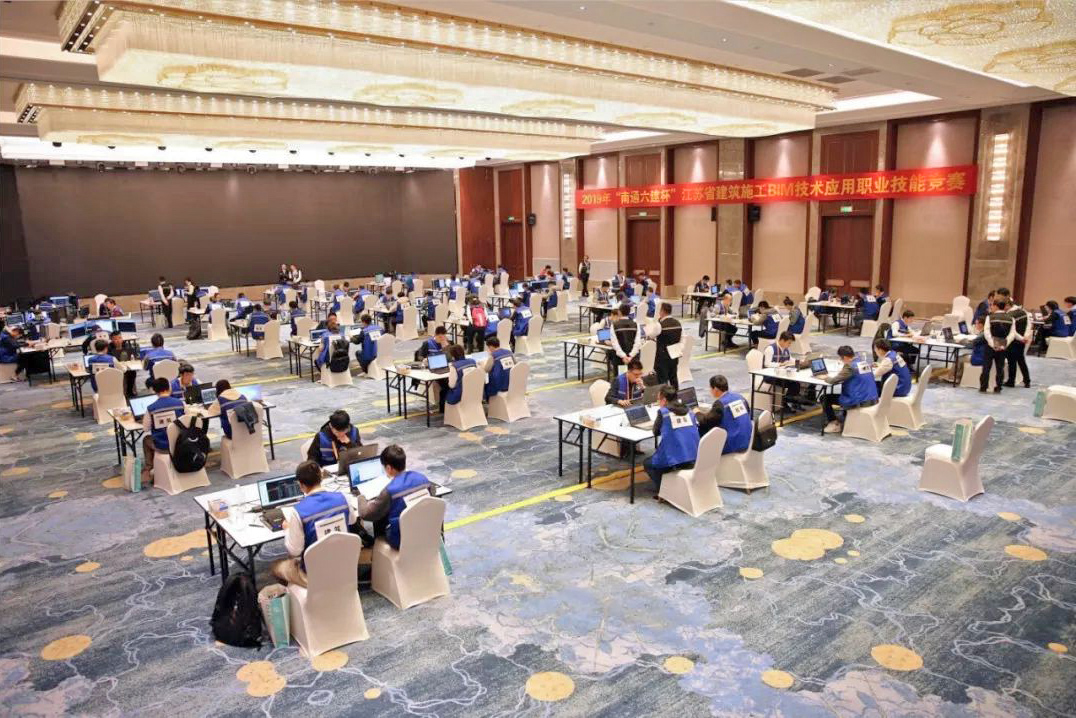 揚建網訊 10月17日至18日,“南通六建杯”全省建筑施工BIM技術應用職業技能競賽在南通如皋開元名都大酒店舉行,全省各個區市共計30個參賽組、90名選手集聚一堂,同臺競技。在集團領導的大力支持下,集團BIM技術中心挑選三位精兵強將組成代表隊,同揚州市設計院、邗建集團代表隊作為揚州市選派的三家單位,參加了本次競賽。
