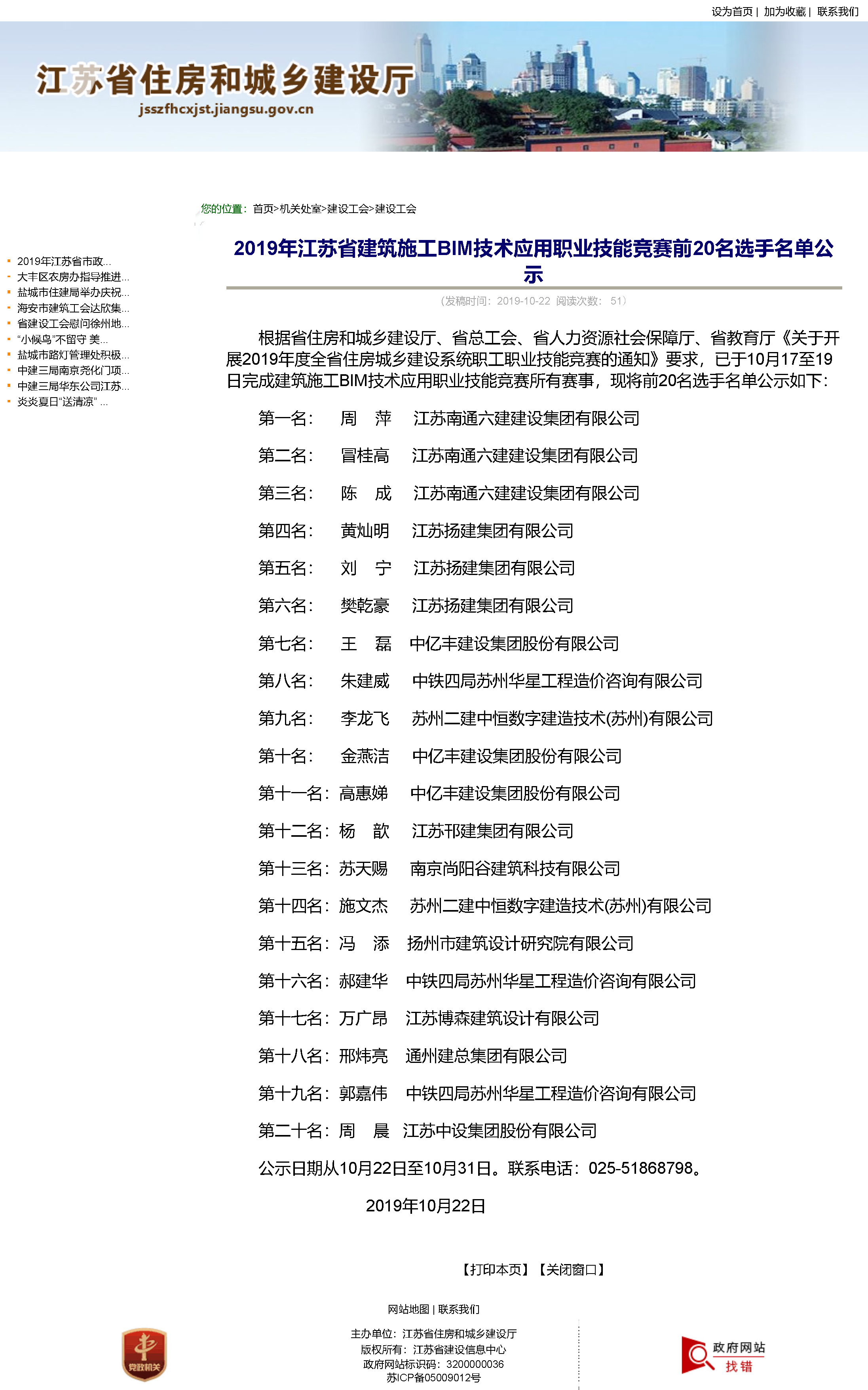 集團在江蘇省首屆BIM技能競賽中喜獲佳績