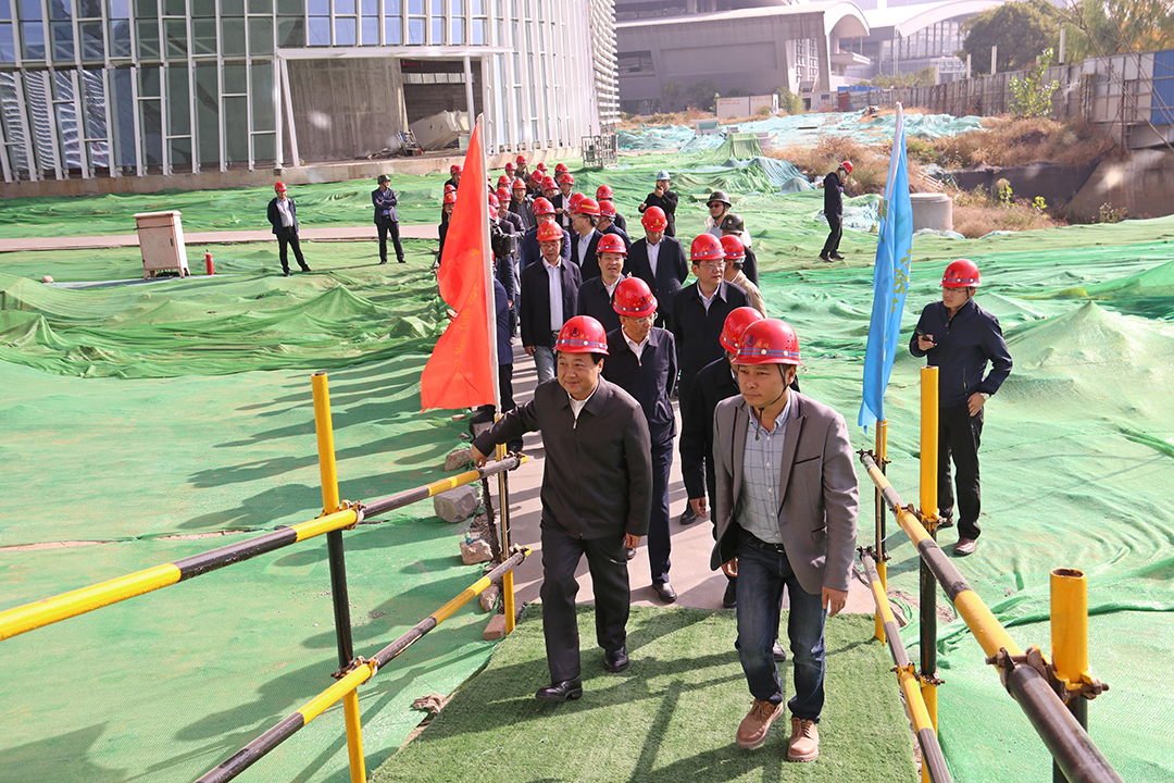 揚(yáng)建網(wǎng)訊 11月1日上午,市委書記謝正義、市長夏心旻、市政協(xié)主席陳揚(yáng)等領(lǐng)導(dǎo)率市四套班子及市委宣傳部負(fù)責(zé)人、市財政局主要負(fù)責(zé)人、分管負(fù)責(zé)人、揚(yáng)州日報社主要負(fù)責(zé)人視察了集團(tuán)三公司承建的新大劇院項目。集團(tuán)副總經(jīng)理、三公司經(jīng)理劉海斌等陪同。