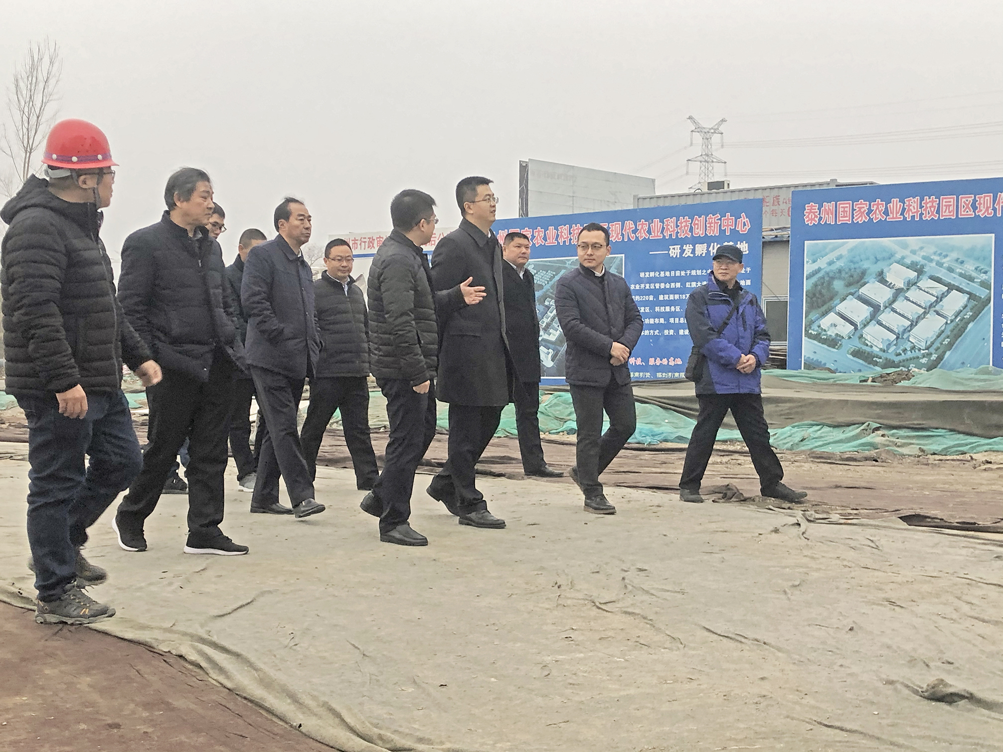 揚建網訊 12月23日下午,泰州市委副書記張迅、農業園區管委會主任張彧、副主任郁斌、泰農集團法人袁櫟洲一行來到泰州國家農業開發區現代農業科技創新中心-產業化基地進行現場調研,泰州分公司經理何平陪同。