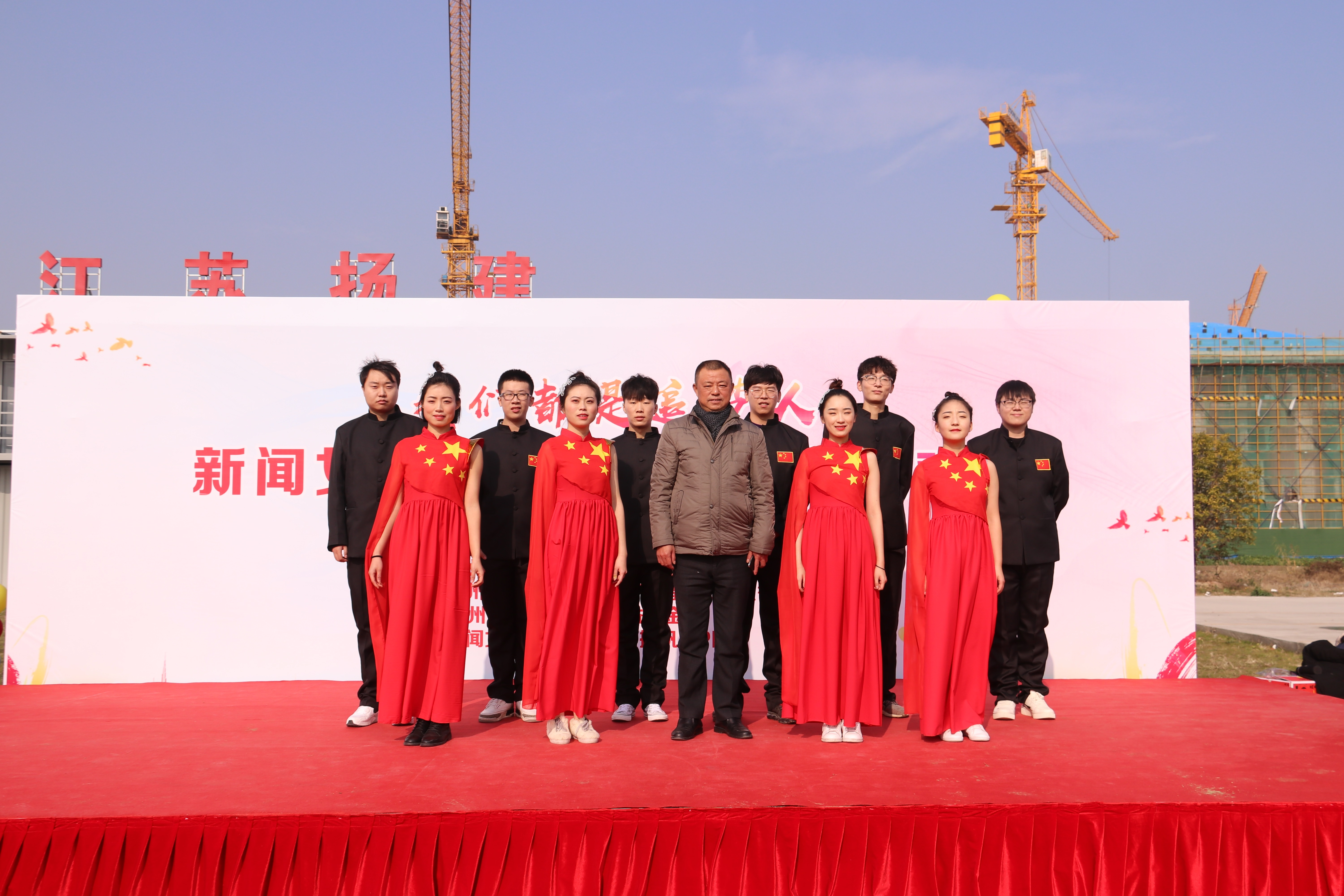揚建網(wǎng)訊 12月28日中午,由揚州市文明辦、揚州市民政局、揚州市衛(wèi)生健康委員會、揚州廣電總臺和我揚建集團聯(lián)合主辦的“我們都是追夢人——新聞女生 產(chǎn)業(yè)工人新年聯(lián)歡會"在我集團廣陵教育文化產(chǎn)業(yè)基地項目初中部(即華師大初中部項目)工地順利舉行。市相關(guān)領(lǐng)導(dǎo)和我集團黨委副書記、工會主席張振新等出席了本次活動。