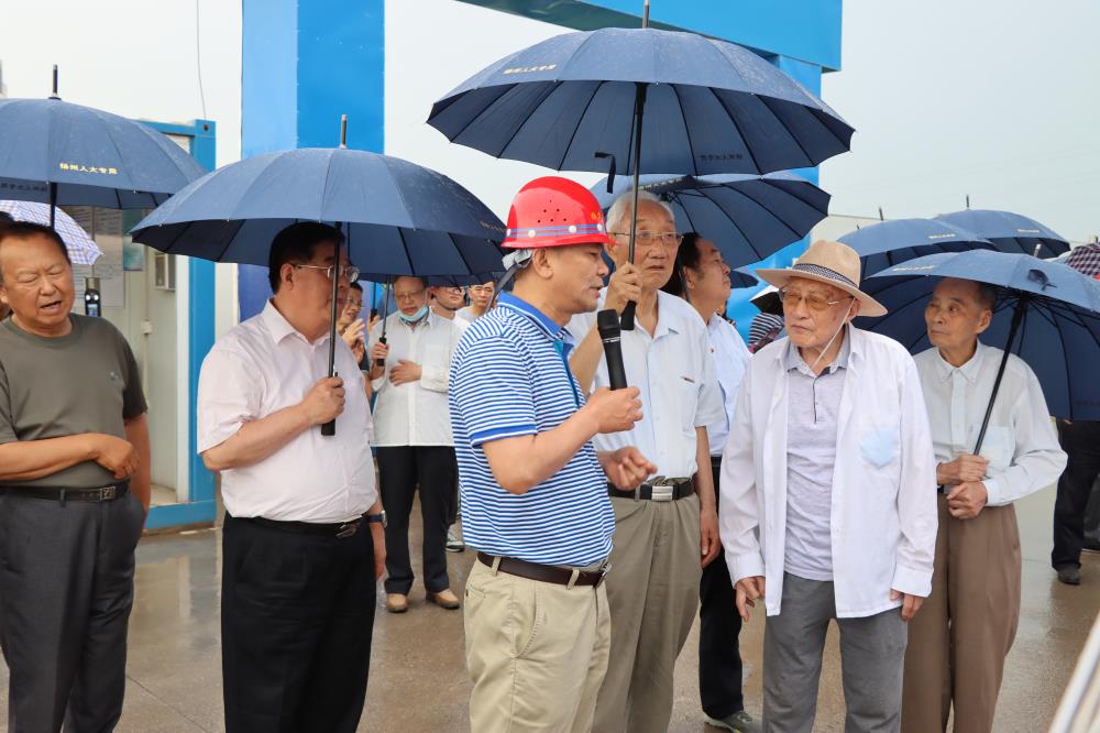 揚建網訊 6月5號上午,廣陵區委書記潘學元及揚州市委市政府離退休老干部一行視察我集團總包承建的蘇中智慧農業產業示范城項目,沙頭鎮黨委書記邵海峰等陪同。