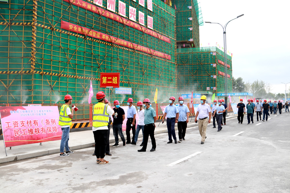 揚建網訊 6月29日下午,市住房和城鄉建設局在集團與邗建集團共同承建的揚州軟件園項目舉行2020年揚州市建筑施工安全生產標準化現場觀摩會。省建筑安全監督總站站長王佳強、市住建局局長陶伯龍、副局長薛炳寬、市建工控股董事長王宏、我集團總經理鄒厚存、副總經理丁傳武及來自全市各縣區建設安全監管部門,建筑企業共300余位代表等出席活動。