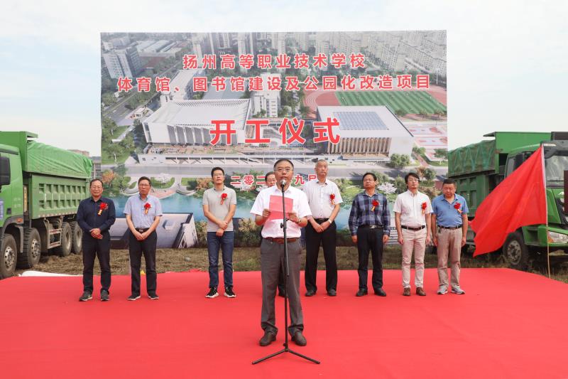 市教育局副局長衛剛、揚州教育投資集團丁衛峰副總經理、揚州高職技校校長陳大斌分別致辭,他們都對工程建設提出了希望和要求。我集團總經理鄒厚存在致辭時表示,揚建集團將與業主、設計、監理等單位通力合作,堅持“百年大計、質量第一”,努力把體育館、圖書館及公園化改造項目建成一流工程、精品工程、廉潔工程,彰顯揚州高職技校高品質教育特色和良好學習環境。