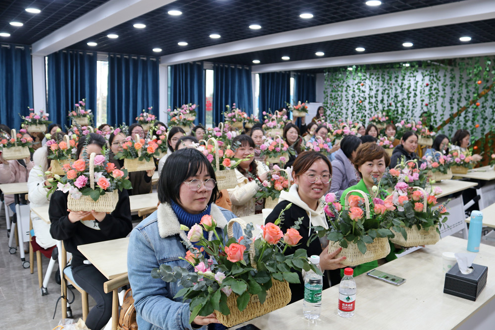 下午14點,在揚建觀月湖生態園職工活動中心開展了插花藝術講座活動。花藝師現場教授花藝知識、插花技巧。女員工們在花藝師的指導下親自動手體驗插花藝術,大家各自發揮創造力,施展插花技能,將原本普通的花草修剪搭配后,魔術般地擺出了各種獨特造型,享受著親自創作的樂趣和插花藝術帶來的快樂。每一束鮮花都有著特殊的寓意,承載著溫暖的祝福,插花是一種簡單的生活藝術,也是一種精神的享受。精心、周到、溫馨、知性的活動,不僅使女員工在節日里獲得知識、開闊視野,也讓大家身心得到了放松,忘卻職場之累。