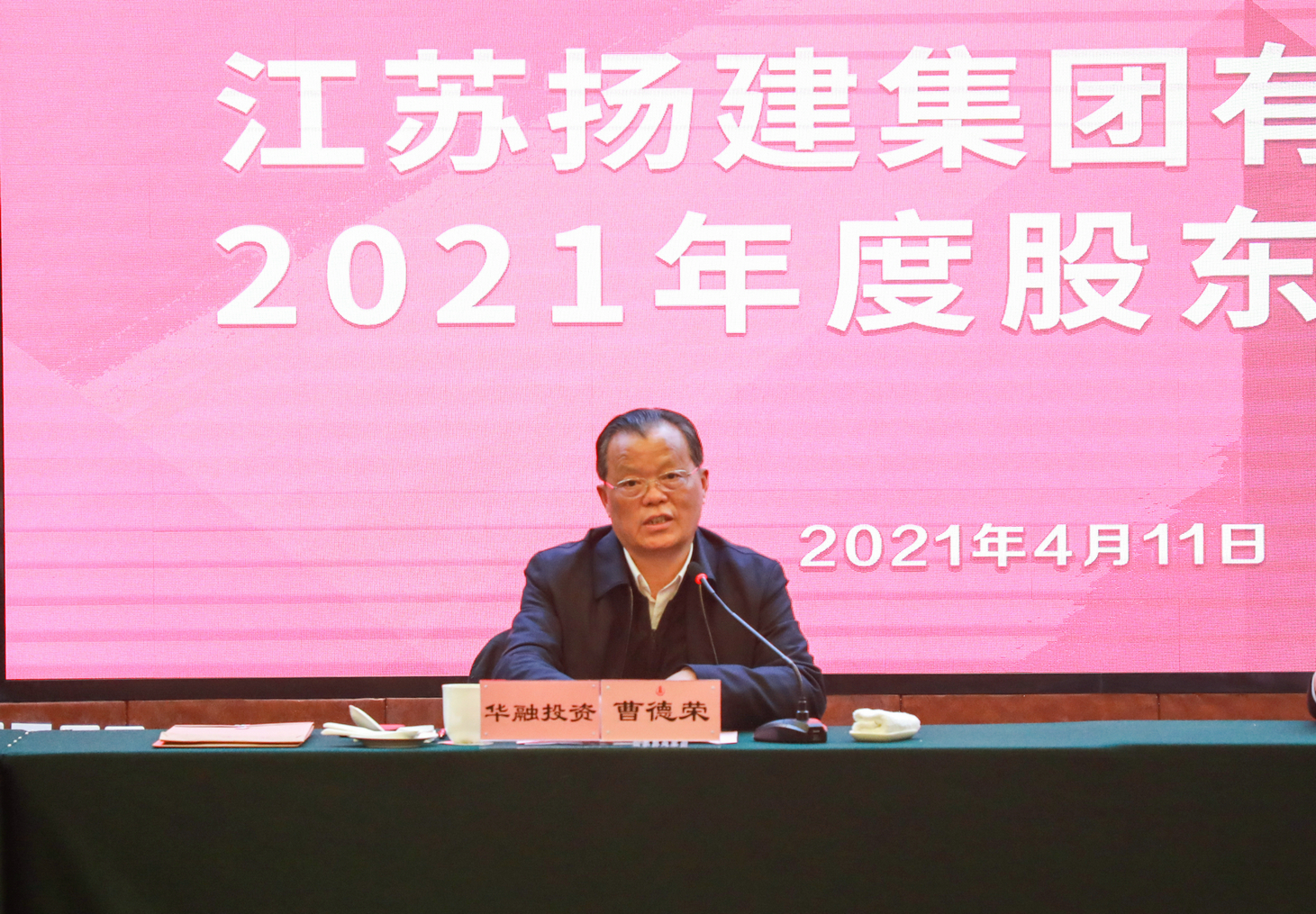 揚(yáng)建網(wǎng)訊 4月11日下午,江蘇揚(yáng)建集團(tuán)有限公司2021年度定期會議在揚(yáng)州西園大酒店二樓和萃廳隆重召開。會議由華融揚(yáng)建控股公司董事長曹德榮同志主持,全體股東出席。