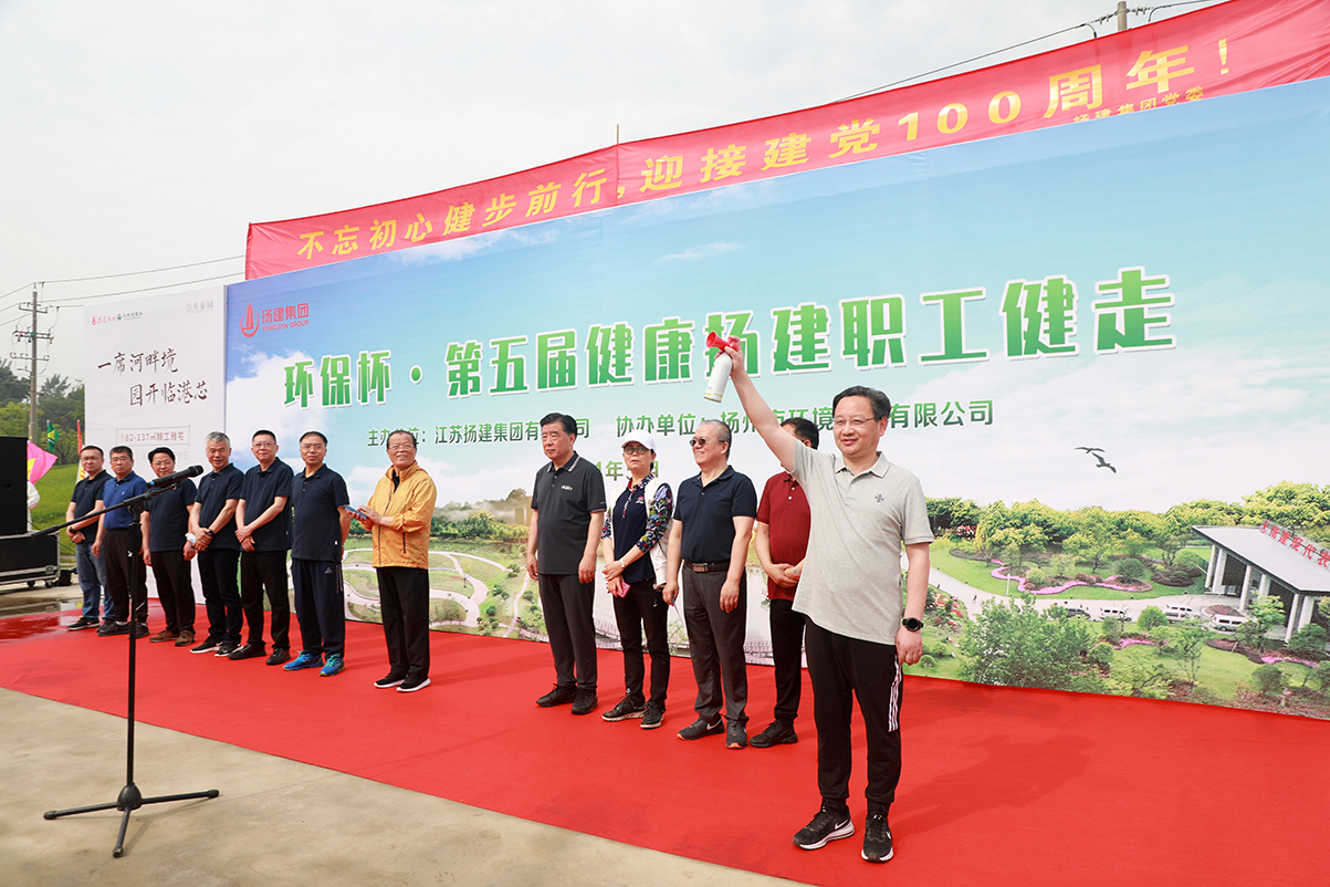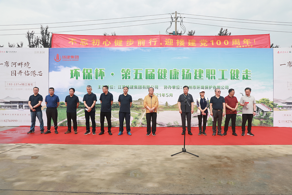 揚建網訊 5月15日上午,集團黨委組織組織開展了以“不忘初心,健步前行”為主題的“環保杯”職工健走活動,喜迎建黨100周年。本次活動在揚州觀月湖揚建現代農業園隆重舉行,集團工會、團委協辦,來自總部和基層單位的1223名員工參加;其中,泰州、無錫、上海、海南、深圳、珠海、北方公司分別在當地組織員工同步開展了健走活動。集團理事會主席曹德榮等在揚領導參加了開幕式及健走活動。
