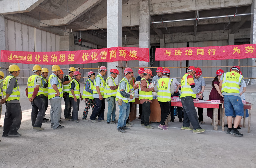 活動開始,市司法局領(lǐng)導(dǎo)詢問工人是否有法律方面的問題需要咨詢;并介紹了農(nóng)民工兄弟維權(quán)合法渠道。接著,何平部長代表我集團對政府相關(guān)部門給予集團和農(nóng)民工的關(guān)心關(guān)愛表示感謝,對辛勤奮斗在施工一線的工人兄弟表達了慰問?;顒又?,市相關(guān)部門領(lǐng)導(dǎo)給現(xiàn)場工人發(fā)放了《勞動法》《保障農(nóng)民工工資支付條例》《工傷保險條例》《中國人民共和國民法典》等法律法規(guī)宣傳冊,并送去夏季防護用品,切實為工人謀實惠、辦實事,受到現(xiàn)場工人一致好評。
