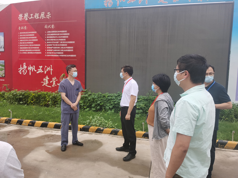 揚建網訊 8月15日上午10:00,揚州市廣陵區郎俊區長和李建芳副區長來到揚州頤和醫療健康中心項目檢查了項目防疫工作。