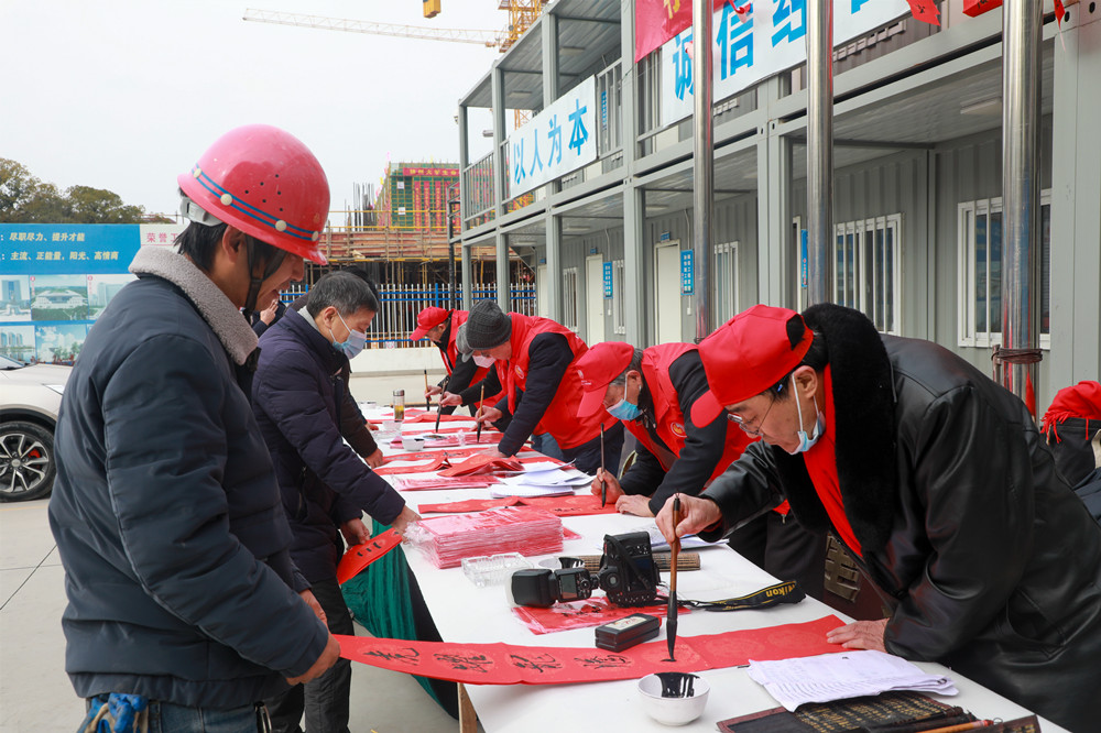 揚建網訊 2022年1月20日上午,市人大機關老干部黨支部聯合揚州市老干部書畫研究會,來到我集團項目管理三公司承建的揚州大學生命科學大樓項目建設工地,為駐守工地的農民工兄弟們寫春聯、送福字。在新年來臨之際,提前向他們送上新春祝福,為他們送吉祥,鼓干勁,感謝他們為“好地方”揚州的城市建設和發展默默奉獻智慧與汗水。