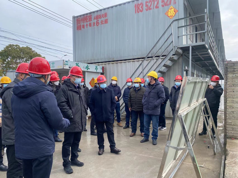 揚建網(wǎng)訊 2月8日上午,揚州市市委常委、副市長趙慶紅帶領市住建局、區(qū)建設局等職能部門一行對一公司歐美工業(yè)園C地塊EPC工程總承包工地進行了檢查指導,集團公司副總經(jīng)理丁傳武、陳寶中陪同參與檢查。