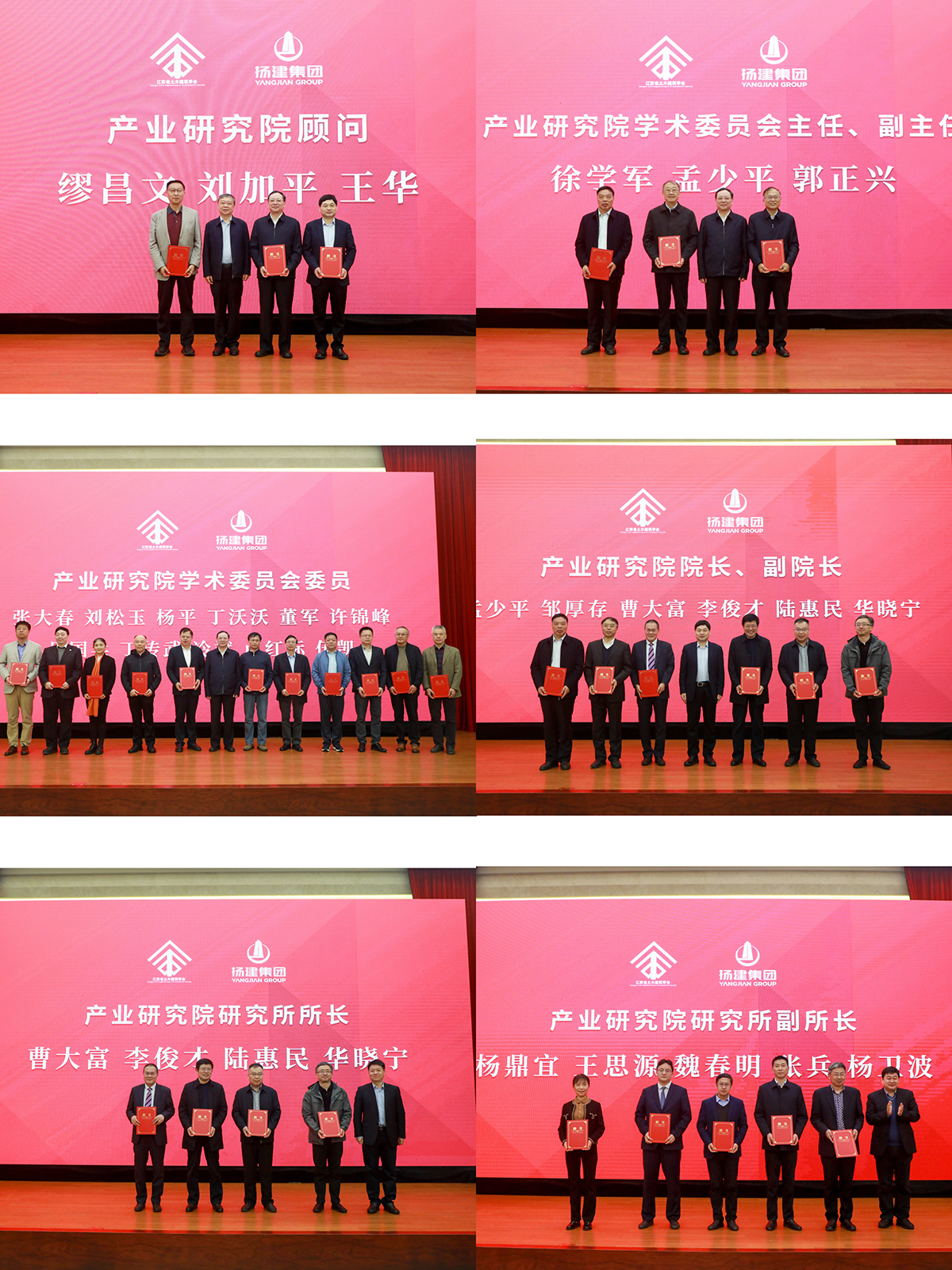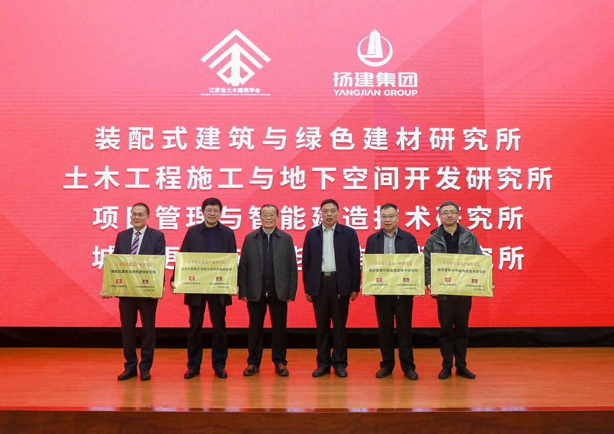 在一陣陣熱烈的掌聲中,繆昌文、劉加平、李政、徐學軍、王宏、康往東共同開啟了江蘇綠色建造產業研究院掛牌儀式。隨后,江蘇綠色建造產業研究院院長孟少平、江蘇揚建集團理事會主席曹德榮共同為裝配式建筑與綠色建材研究所、土木工程施工與地下空間開發研究所、項目管理與智能建造技術研究所、城市更新與節能改造技術研究所授牌。