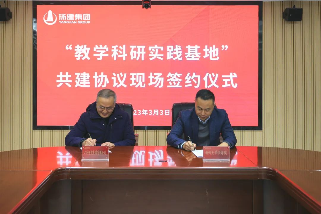 揚建網訊 3月3日上午,揚州大學法學院來揚建集團舉行了“教學科研實踐基地”校企共建活動。揚大法學院黨委書記花瑞鋒、揚建集團黨委副書記呂國兵分別帶隊參加。