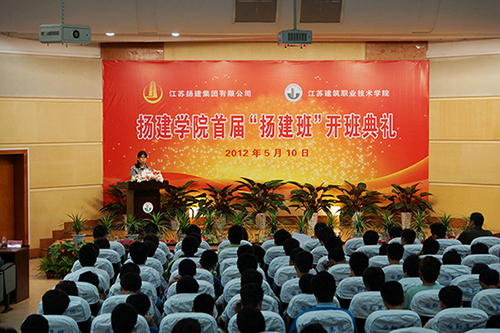 2014年4月29日,為持續(xù)推進和深化集團“校企合作”人才培養(yǎng)戰(zhàn)略,在第一屆“揚建班”收獲良好成效的基礎上,集團與江蘇建筑職業(yè)技術學院聯合開展第二屆“揚建班”報名學生招錄工作,為“雙百揚建”的建設夯實人才基礎。