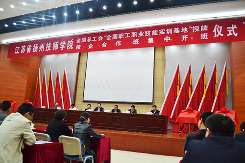 2014年3月集團與江蘇省揚州技師學院合作建立實訓基地,共同培養(yǎng)集團所需的高技能實用型人才,并計劃在人才培養(yǎng)、職工培訓、產學研結合等方面開展多形式、多渠道的有效合作。